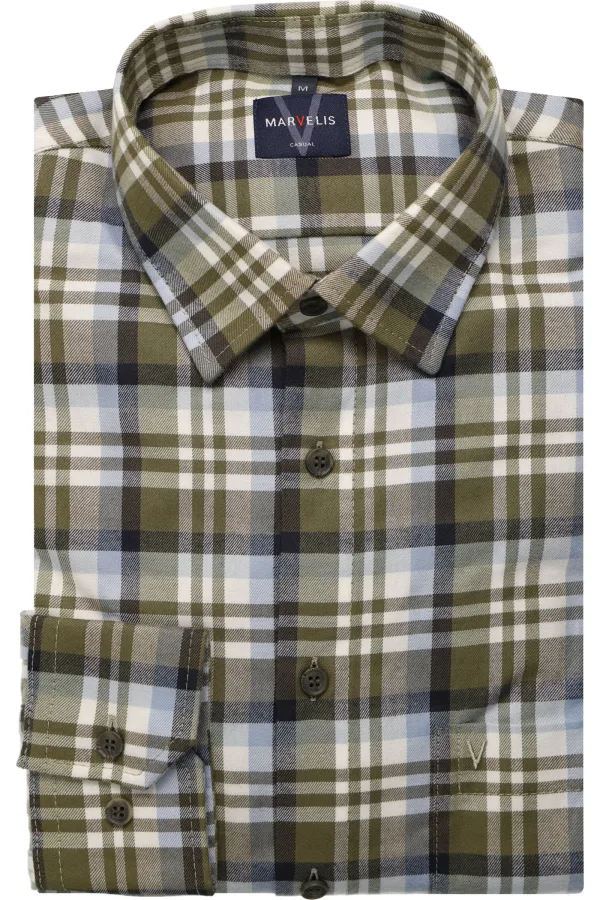Marvelis Casual Overhemd olijf, Ruit Prijzen