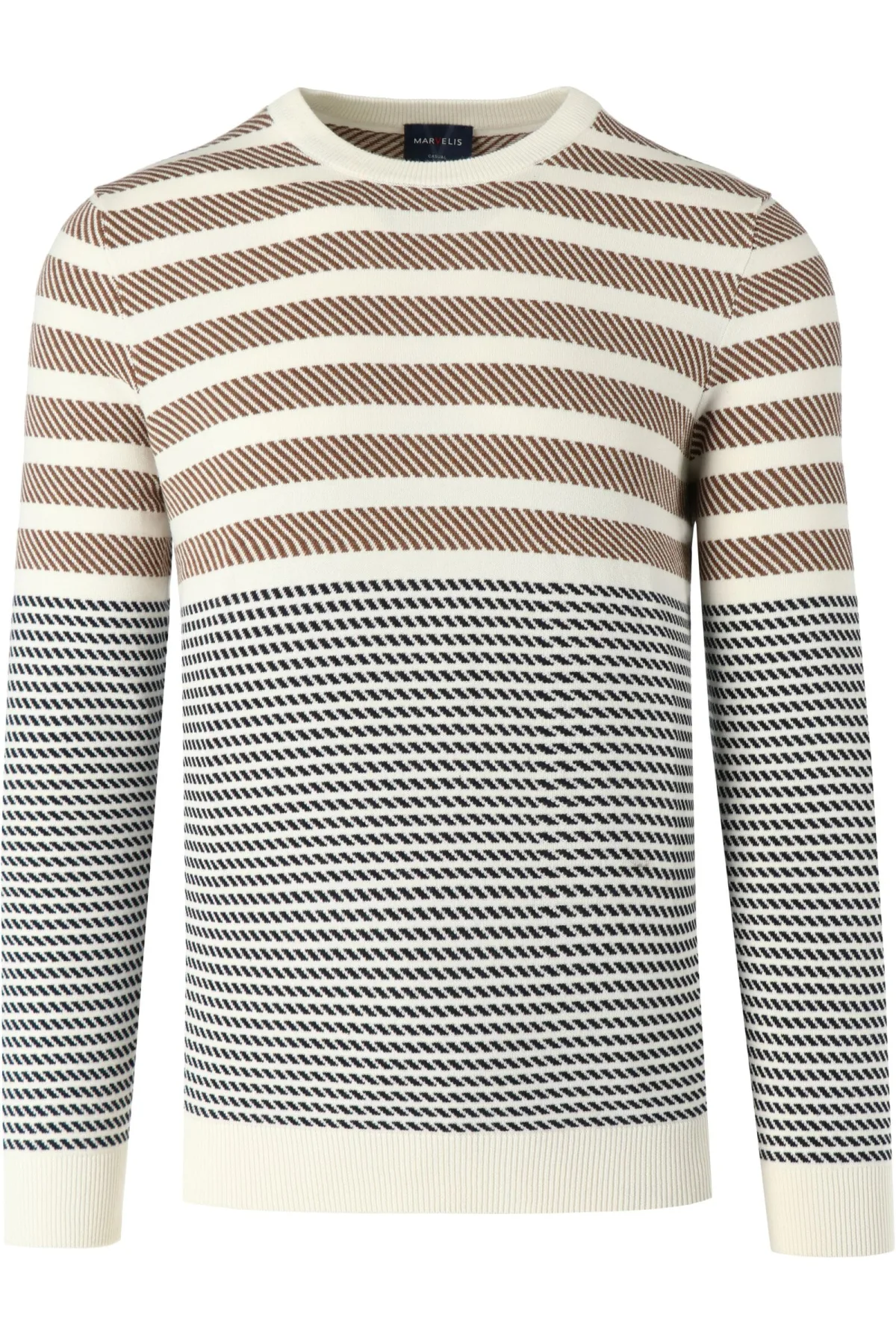 - Bij Overhemden.com kun je Marvelis Casual Trui ronde hals ecru, Horizontale strepen kopen voor slechts €26,95