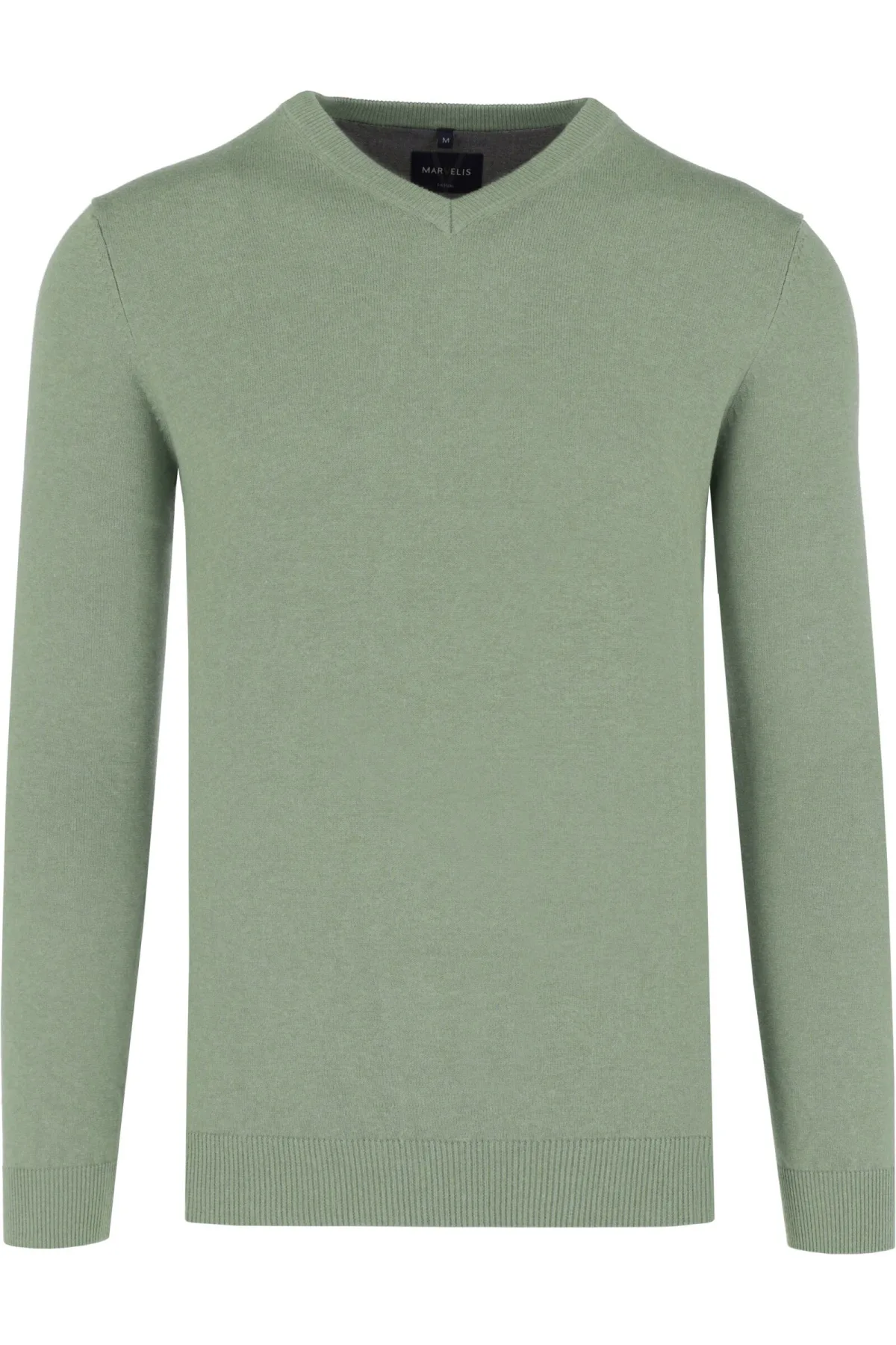 Marvelis Casual Trui V-hals lichtgroen, Effen Prijzen
