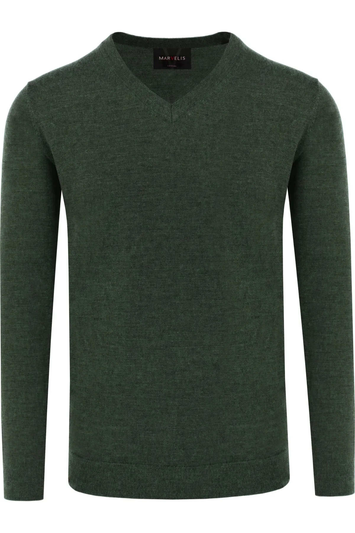 Marvelis Casual Trui V-hals olijf, Effen Prijzen