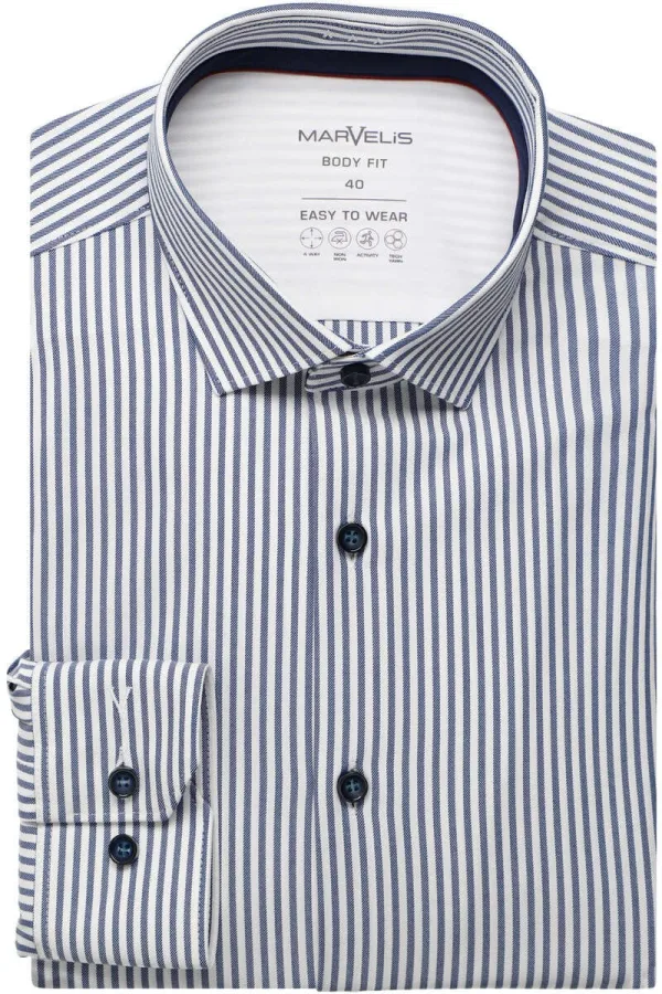 - Bij Overhemden.com kun je Marvelis Dynamic Flex Body Fit Overhemd marine, Gestreept kopen voor slechts €43,95