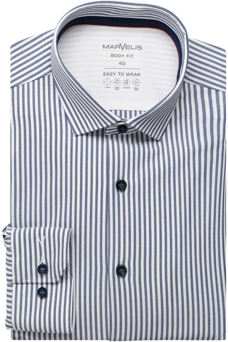 Marvelis Dynamic Flex Body Fit Overhemd marine, Gestreept