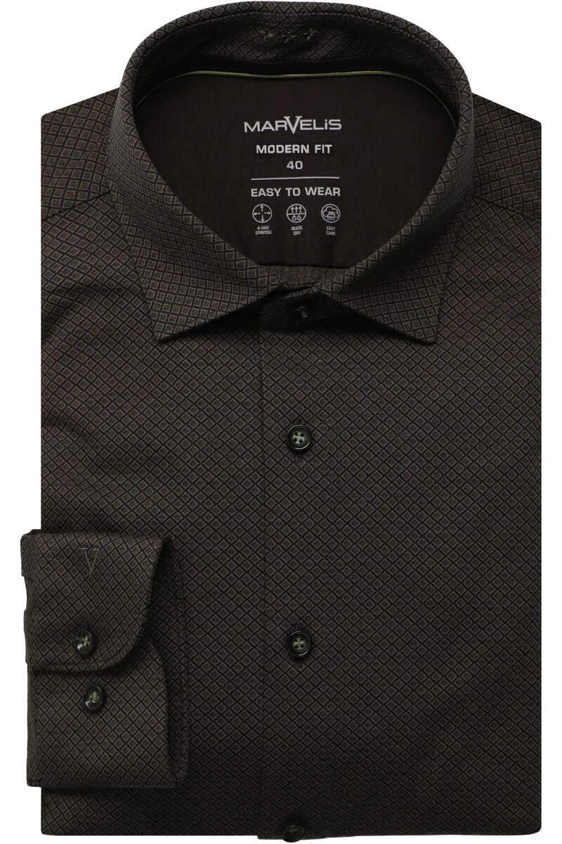 Marvelis Dynamic Flex Modern Fit Overhemd olijf, Motief Prijzen