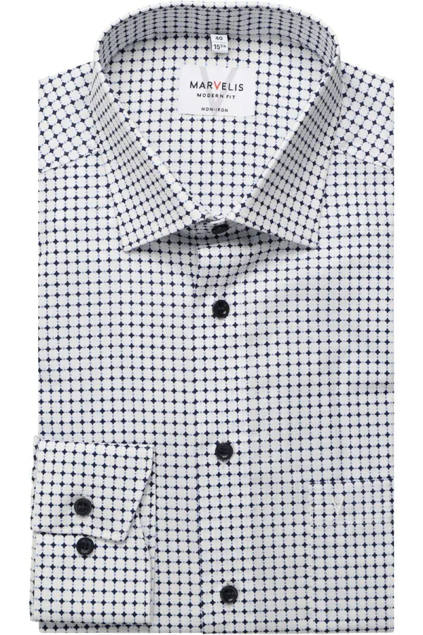 Marvelis Modern Fit Overhemd blauw, Motief Prijzen