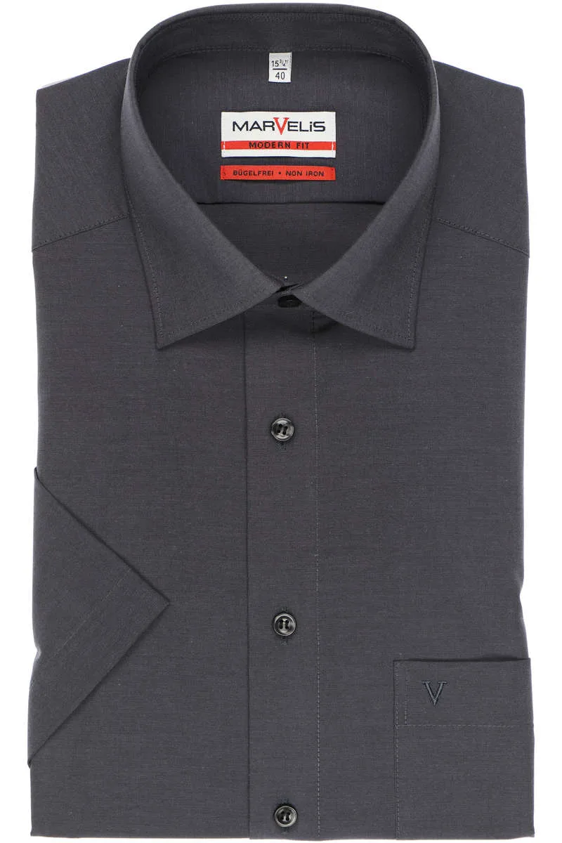 MARVELIS modern fit overhemd - korte mouw - antraciet -...