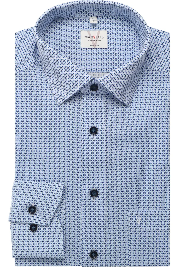 - De laagste prijs van MARVELIS modern fit overhemd popeline wit met licht en donkerblauw dessin Strijkvrij Boord werd gevonden op 23 april 2026 20:25.