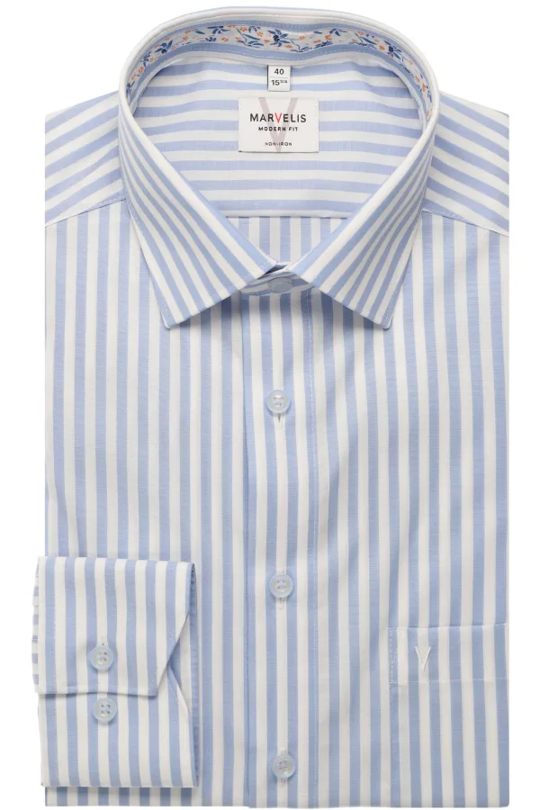 - De laagste prijs van MARVELIS modern fit overhemd popeline wit met lichtblauw gestreept Strijkvrij Boord werd gevonden op 24 april 2026 23:28.