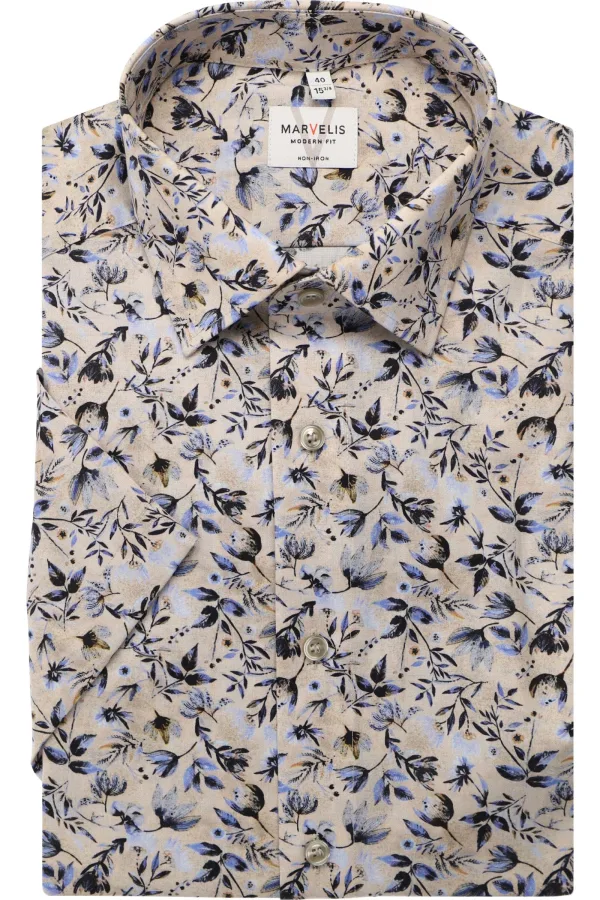 - De laagste prijs van MARVELIS modern fit overhemd korte mouw popeline beige met blauw en bruin bloemen dessin Strijkvrij Boord werd gevonden op 24 april 2026 13:28.