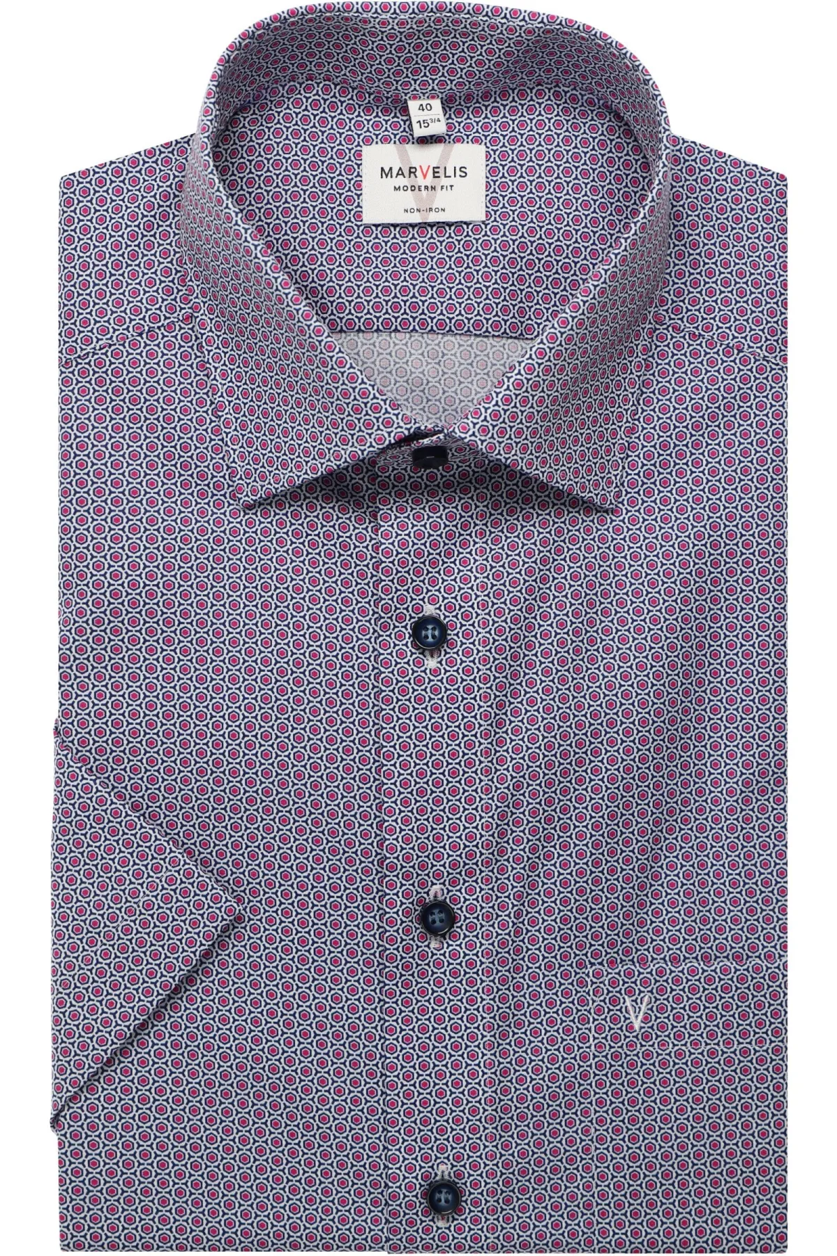 - Bij bol.com kun je MARVELIS modern fit overhemd - korte mouw - popeline - blauw met wit en donkerroze dessin - Strijkvrij - Boord kopen voor slechts €90,90