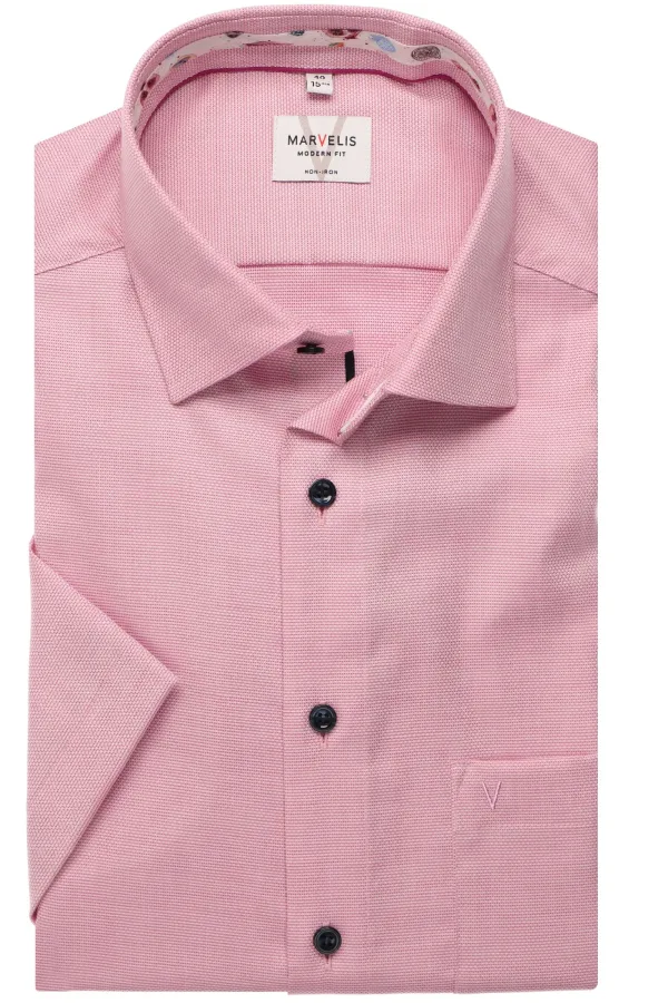 MARVELIS modern fit overhemd korte mouw structuur roze Strijkvrij Boord