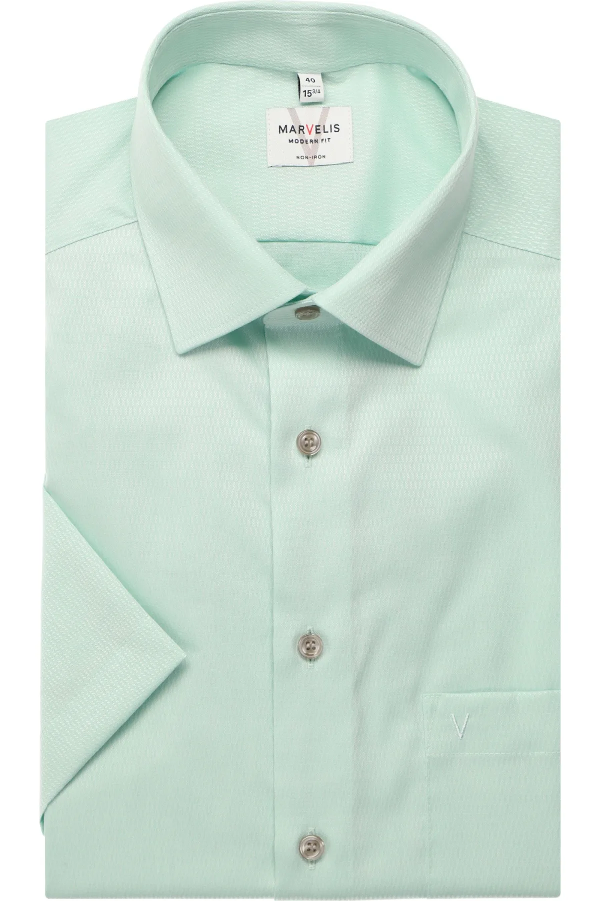 MARVELIS modern fit overhemd korte mouw structuur groen Strijkvrij Boord