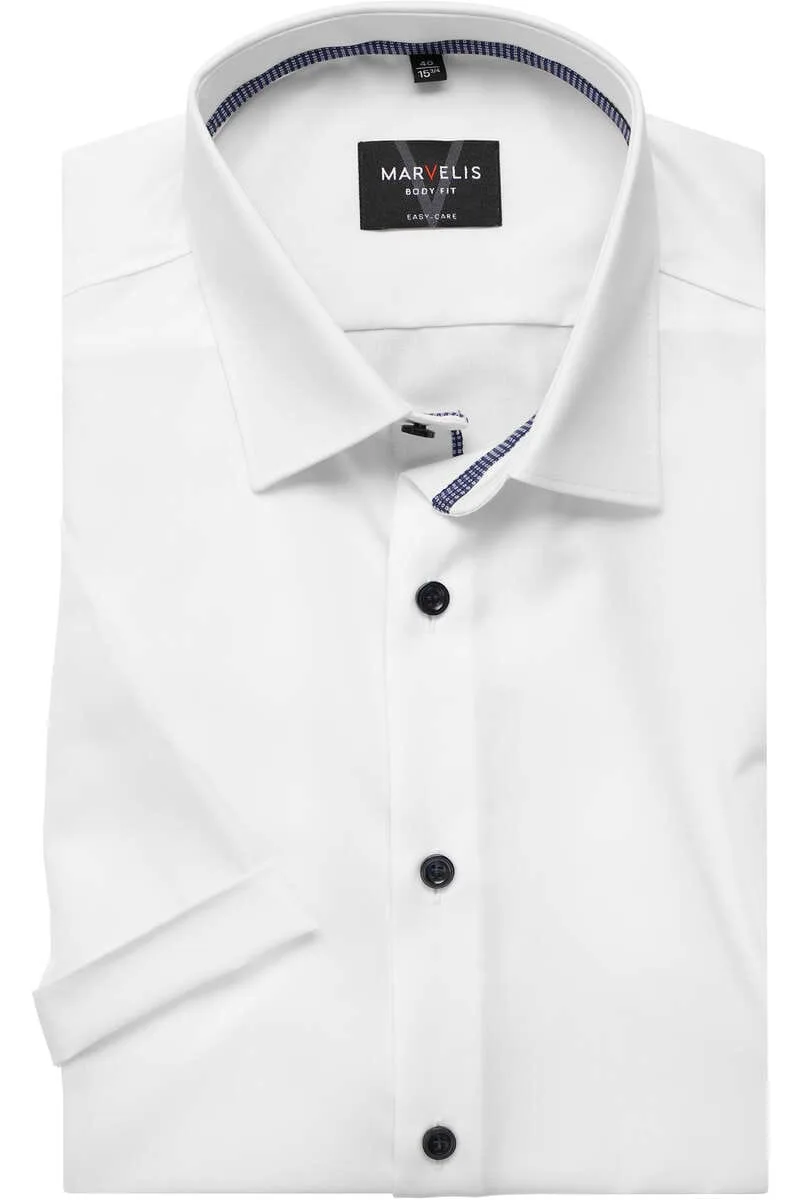 MARVELIS body fit overhemd korte mouw popeline wit Strijkvriendelijk Boord
