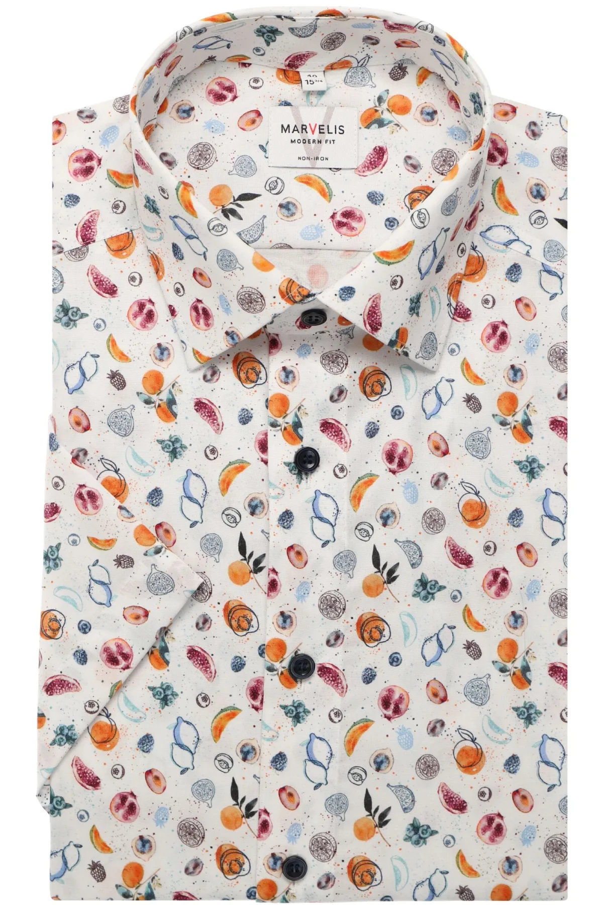 - De laagste prijs van MARVELIS modern fit overhemd korte mouw popeline wit met blauw oranje en roze fruit dessin Strijkvrij Boord werd gevonden op 24 april 2026 16:51.