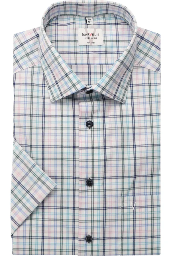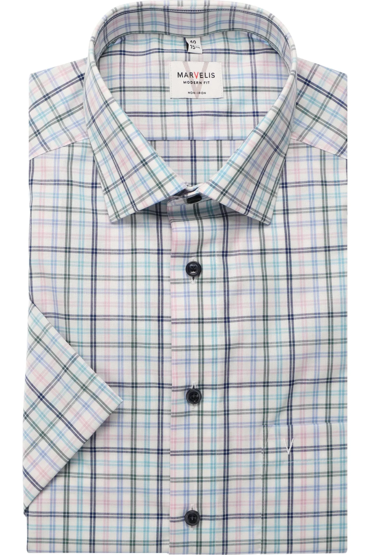- De laagste prijs van MARVELIS modern fit overhemd korte mouw popeline wit met blauw groen en roze geruit Strijkvrij Boord werd gevonden op 24 april 2026 23:35.