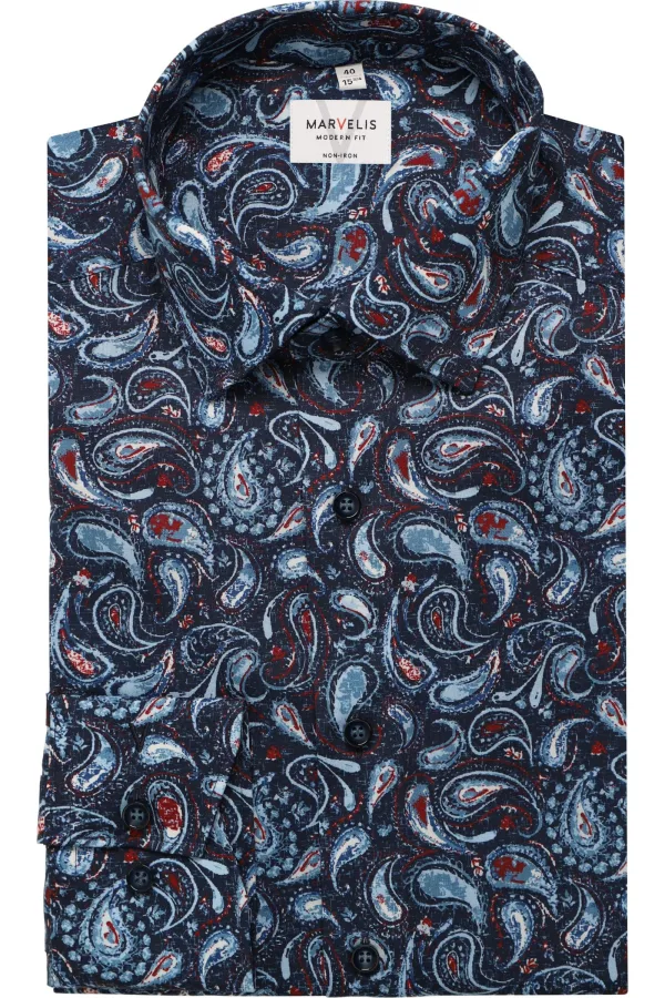 - Bij Overhemden.com kun je Marvelis Overhemd marine, Bedrukt kopen voor slechts €37,95