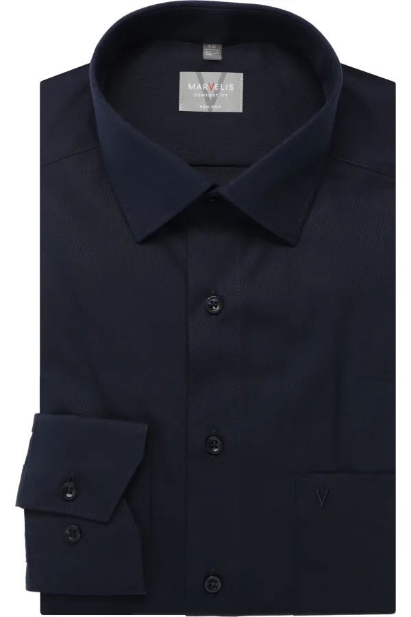 MARVELIS comfort fit overhemd - structuur - donkerblauw - Strijkvrij...