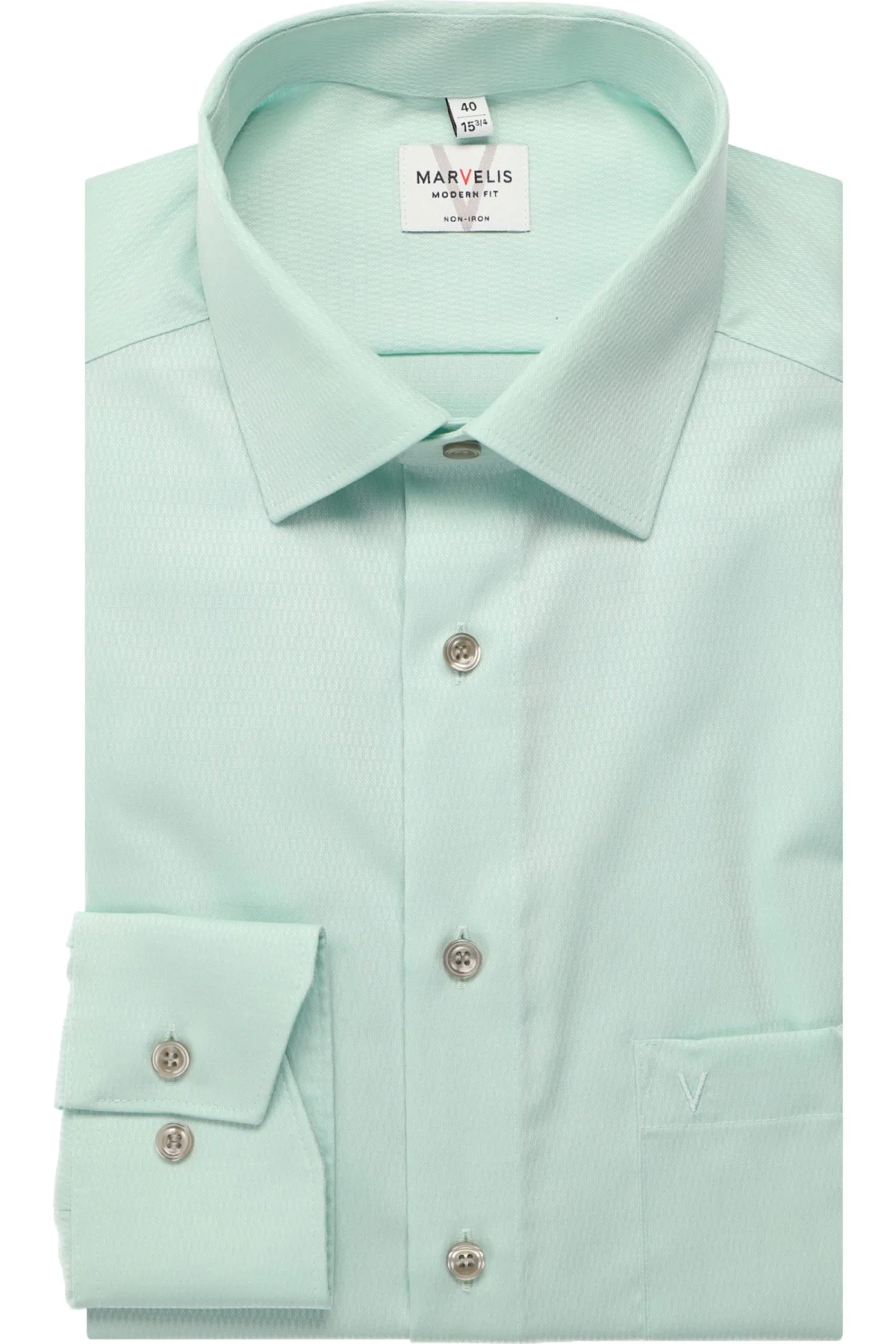 MARVELIS modern fit overhemd mouwlengte 7 structuur groen Strijkvrij Boord