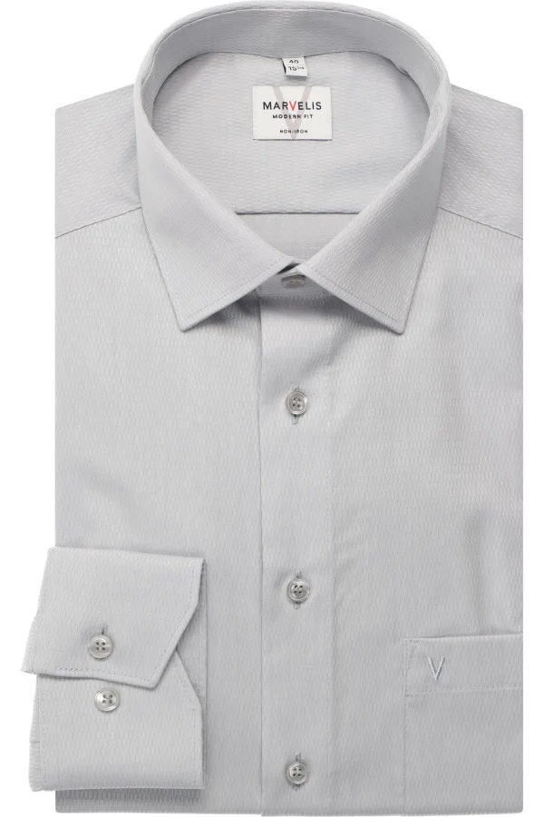 MARVELIS modern fit overhemd mouwlengte 7 structuur lichtgrijs Strijkvrij Boord