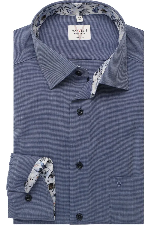 MARVELIS modern fit overhemd fil a fil nachtblauw Strijkvrij Boord