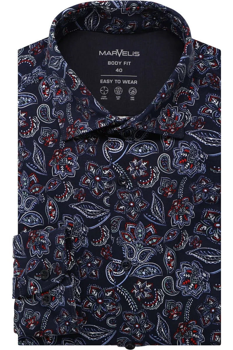 - Bij Overhemden.com kun je Marvelis Performance Body Fit Jersey shirt marine, Paisley kopen voor slechts €43,95