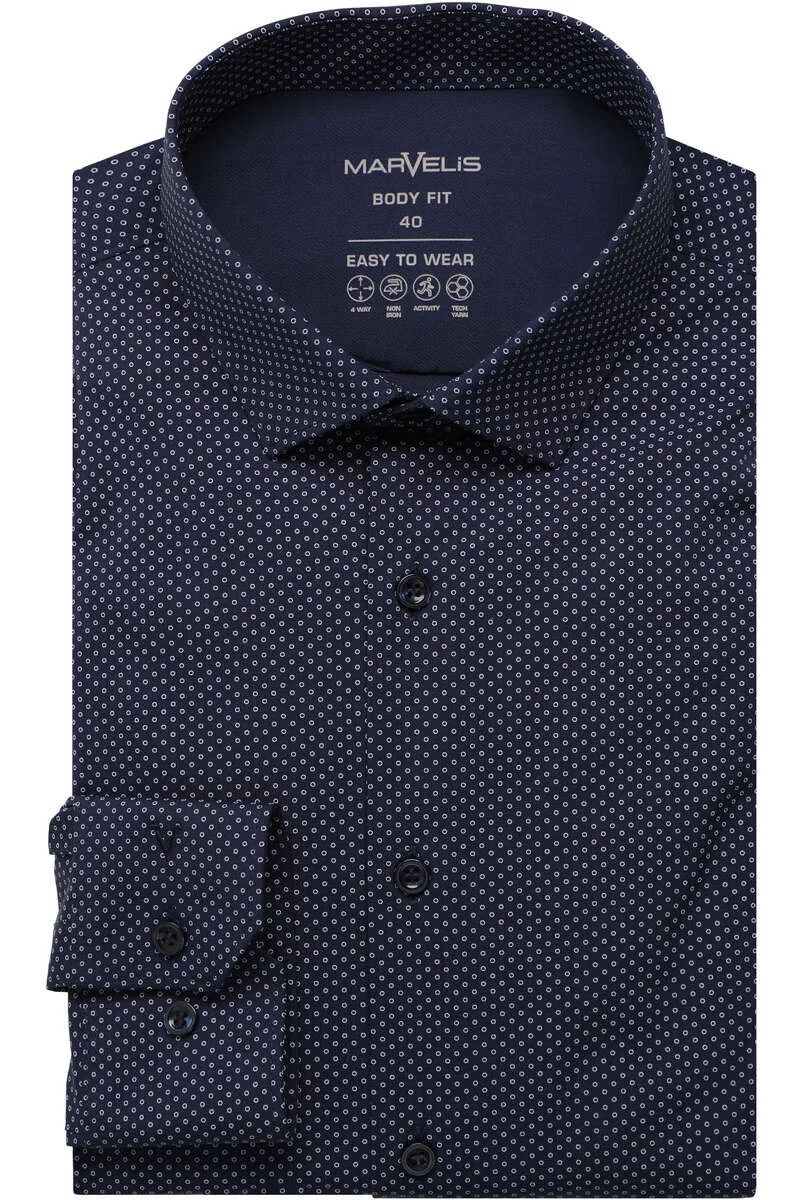 Marvelis Performance Body Fit Overhemd marine/blauw, Motief Prijzen