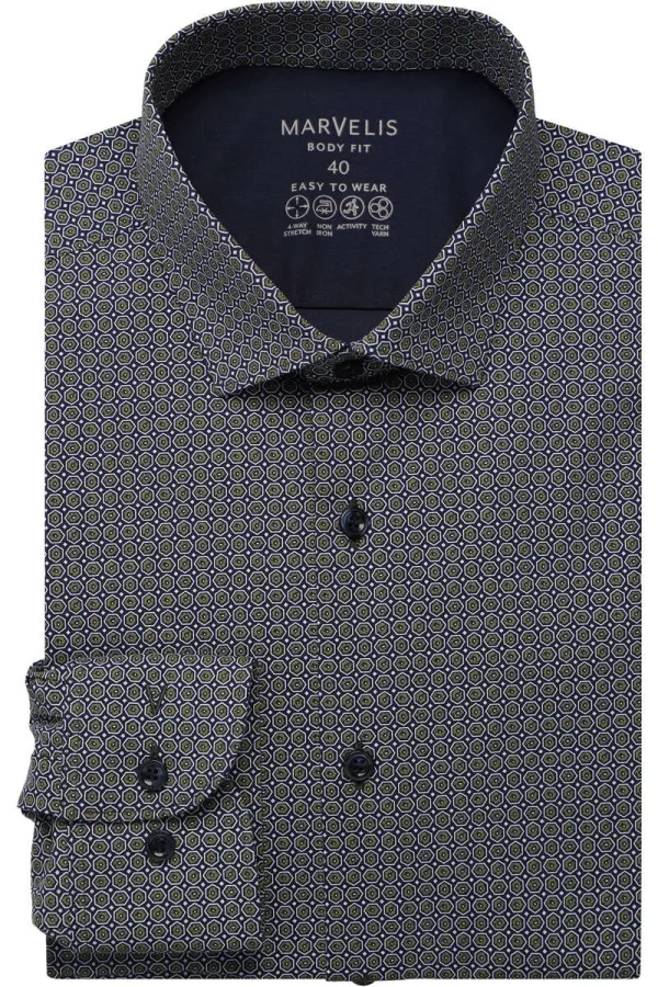 Marvelis Performance Body Fit Overhemd marine, Motief