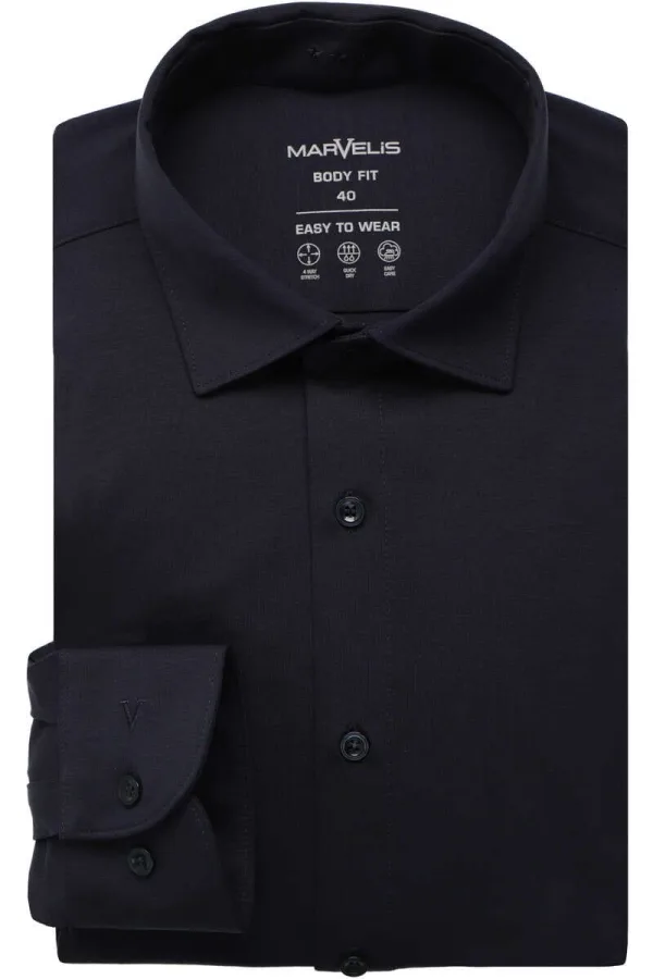 - De laagste prijs van MARVELIS body fit overhemd tricot donkerblauw Strijkvriendelijk Boord werd gevonden op 24 april 2026 04:52.