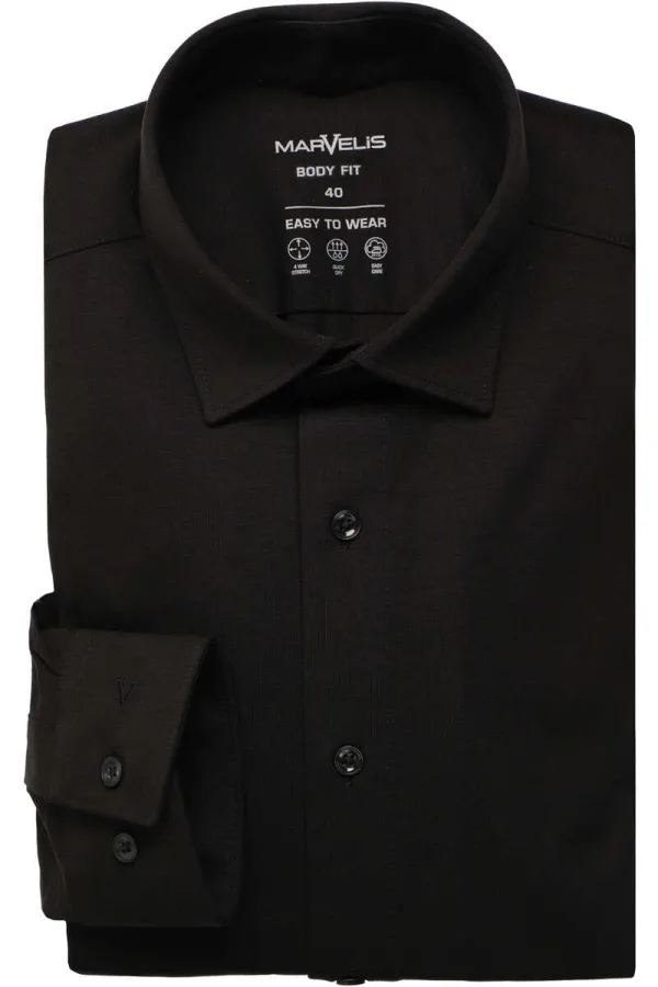 - De laagste prijs van MARVELIS body fit overhemd tricot zwart Strijkvriendelijk Boord werd gevonden op 24 april 2026 21:15.