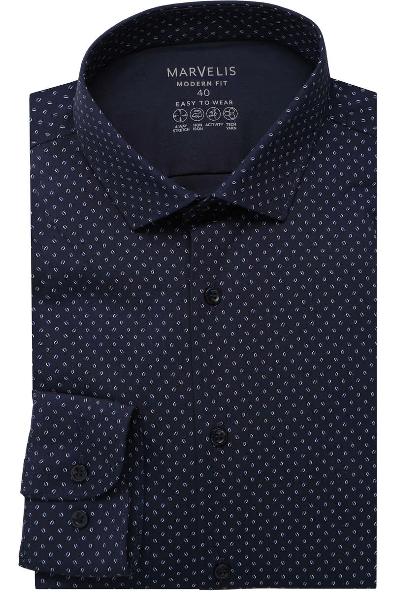 Marvelis Performance Modern Fit Overhemd marine/blauw, Motief Prijzen