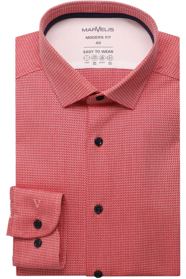 Marvelis Performance Modern Fit Overhemd rood, Faux-uni Prijzen