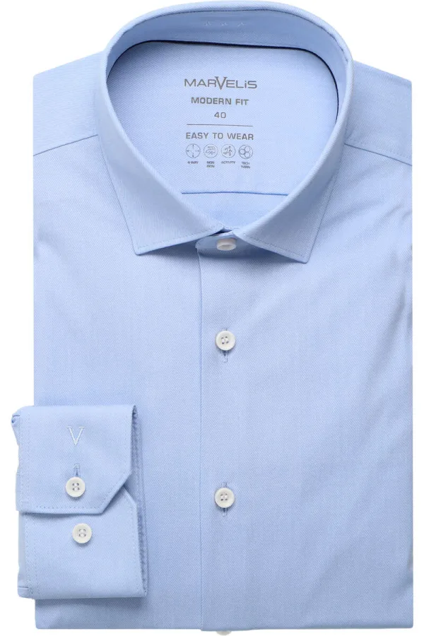 Marvelis Performance Overhemd blauw, Effen