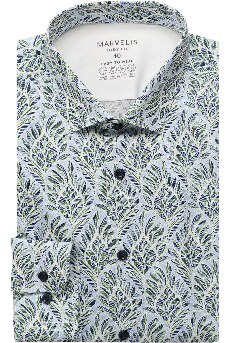 Marvelis Performance Overhemd blauw/groen/wit, Motief