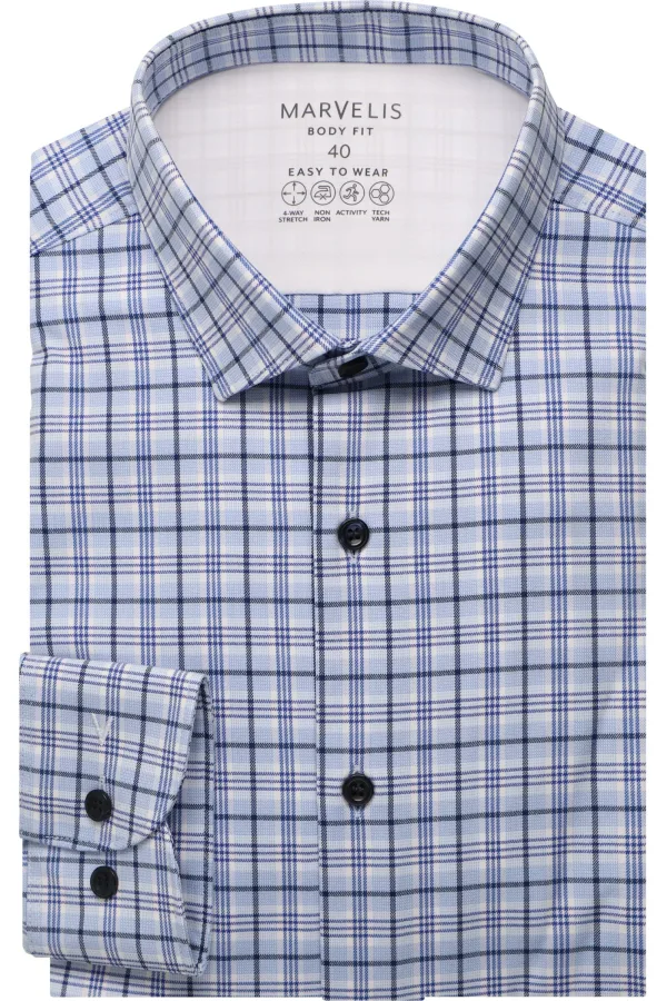 Marvelis Performance Overhemd blauw, Ruit