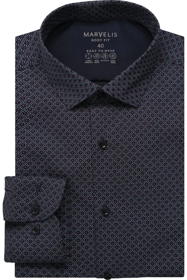 Marvelis Performance Overhemd donkerrood, Bedrukt Prijzen