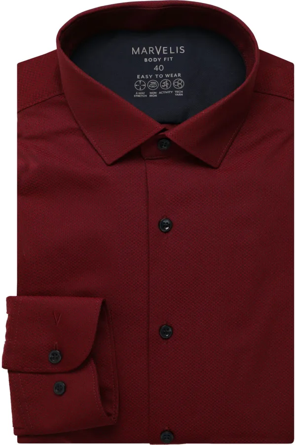 Marvelis Performance Overhemd donkerrood, Faux-uni