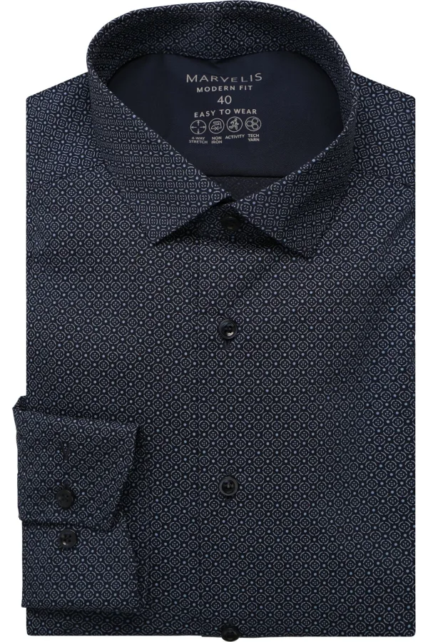 Marvelis Performance Overhemd marine, Bedrukt Prijzen