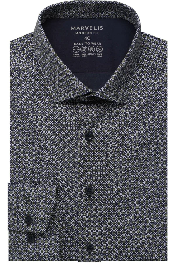 Marvelis Performance Overhemd marine, Bedrukt Prijzen