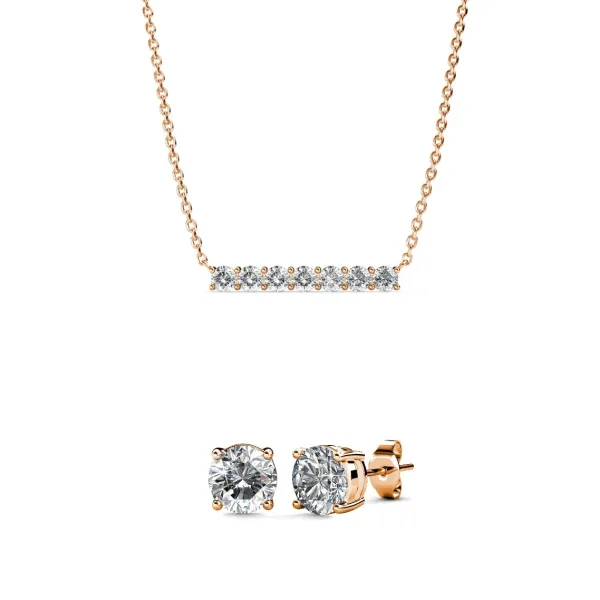 Samenstelling: Messing Afwerking: 18k roségoud verguld Steensoort: Oostenrijks kristal Aantal stenen (stuks): 9 Steenkleur: Kristal Diameter oorbellen (mm): 5,2 Lengte ketting (mm): 400 +50