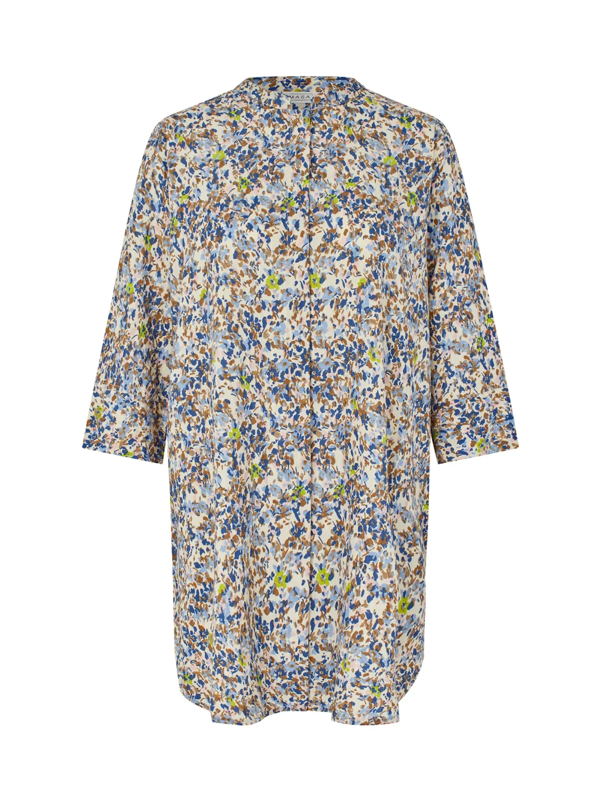 Blouse type: Klassieke blouse; Design: Gevoerde zoom/rand, Knop placket; Materiaal: Viscose; Kraag: Tuniek kraag; Extra's: All-over patroon; Pasvorm: Losse pasvorm; Armlengte: Driekwart mouw; Lengte: Normale lengte