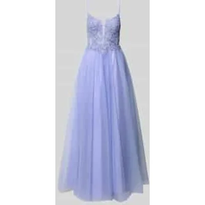 Avondjurk van Mascara;Getailleerde pasvorm;Vierkante hals;Spaghettibandjes;Gebloemd kant met siersteentjes;Bovendeel in semi-transparant design;Uitlopend rokdeel van tule;Glitterlook;Naadritssluiting;Maxilengte;Ruglengte bij maat 36: 155 cm;Borstomvang bij maat 36: 38 cm