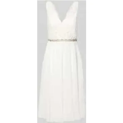 Bruidsjurk van Mascara voor dames;Look: effen;Pasvorm/model: getailleerd;Lengte: knielang;Hals: V-hals;Applicatie: Siersteentjes, gebloemde kant;Details: semi-transparant bovenmateriaal, details: ;Sluiting: Haak- en naadritssluiting;Model bandjes: brede bandjes;Materiaal: Polyester;Totale lengte bij maat 36: 102 cm;Borstomvang bij maat 36: 40 cm