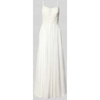Dames bruidsjurk van Mascara;semi-transparant design;Getailleerde pasvorm;Floraal stikselwerk;Spaghettibandjes;Vetersluiting;Ruglengte bij maat 36: 115 cm;Borstwijdte bij maat 36: 36 cm