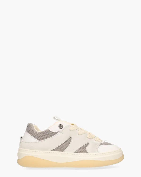 De Venice Tricolore 12C sneakers voor dames van Mason Garments brengen oldskool skaterstijl naar een hoger niveau. Dit handgemaakte model uit Italië combineert luxe en comfort met een bovenwerk van mesh, leer en suède in frisse tinten wit en lichtgrijs. De zachte badstof binnenvoering en het ergonomische schuimvoetbed, bekleed met leer,