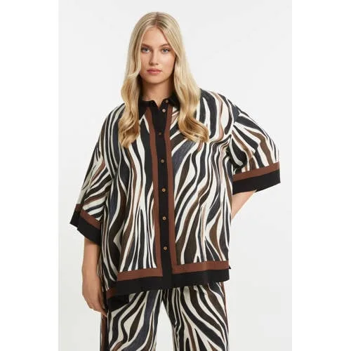 Mat Fashion gestreepte blouse met zebraprint bruin
