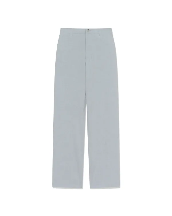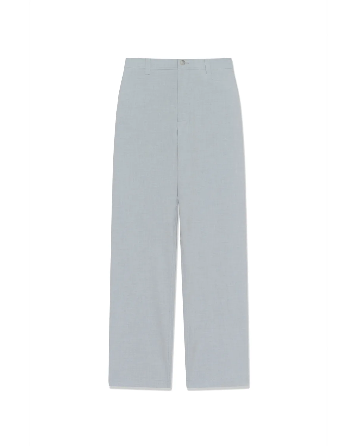 Rechte broek met gladde afwerking, middelhoge taille en klassieke riemlussen. Minimalistisch front voor een moderne, strakke uitstraling.
