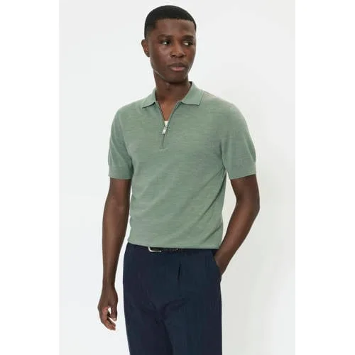 Matinique regular polo met wol fijn gebreid groen