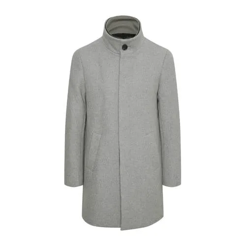 Herenmantel met tijdloze, rechte pasvorm en modern silhouet. Voorzien van opstaande kraag, lange mouwen en functionele zakken. Comfortabel en geschikt voor elke gelegenheid.