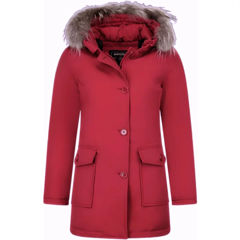 Bontjassen - Dames Winterjas Wooly Lang - Bontkraag -5692A - Rood - Specificaties:- Kleur: Zie Afbeelding- Lengte: Lang- Pasvorm: Normaal - Sluiting: Rits met Knopen- Materiaal: Polyester- Voering: 75% Polyester 25% Katoen- Lichaam voering: 100% Katoen- Zakken: 2 Jaszakken- Collectie: Winter- Standaard Bontkraag: KLEIN - Bontkraag: Afhaalbaar- Wasvoorschrift: Stomerij- Beschikbare Maten: XS - S - M - L - XL Let op: De bontkraag is een natuurproduct en hierdoor heeft ieder stuk bont zijn eigen unieke uitvoering. Het bont kan dus afwijken in volheid van vacht en in kleur dan op de afbeelding weergegeven.