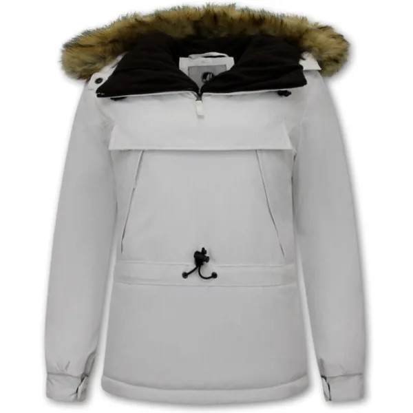 Dames Gewatteerde Jas voor over het Hoofd – Wit - Specificaties:- Dames Gewatteerde Jas voor over het Hoofd - Slim Fit- Kleur: Zie afbeelding -Wit- Lengte: Kort- Pasvorm: Slim Fit- Sluiting: Ritsen in de zijnaden- Verstelbaar elastisch trekkoord in de taille- Elastisch trekkoord in de zoom- Materiaal: 100% Polyester- Voering: 100% Polyester - Zakken: Drie-buitenvakken, Géén binnenzak- Seizoen: Winter- Capuchon: Niet afritsbaar,- Capuchon met verstelbaar elastisch trekkoord- Bontkraag: Faux fur bont Afhaalbaar- Wasvoorschrift: Machinewas 30 graden / Stomerij- Beschikbare Maten: S - M - L - XL -XXL