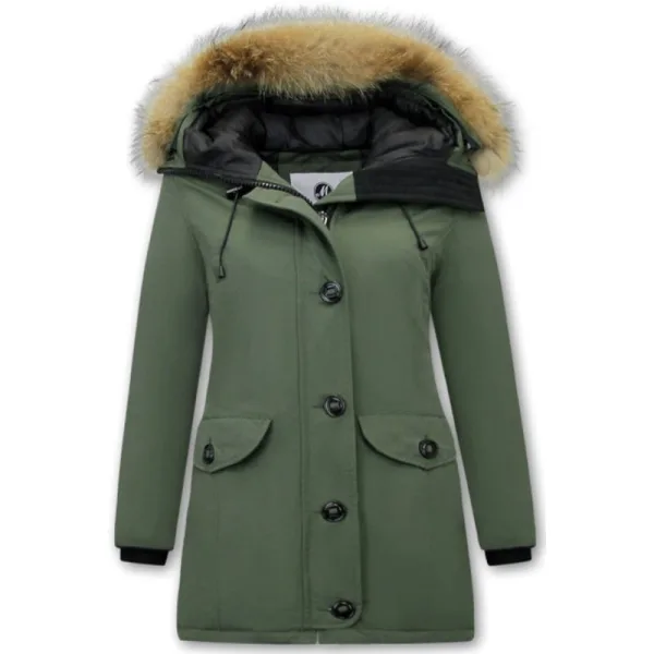 Deze dames winterjas met echte bontkraag is een absolute verschijning en vooral in de kleur blauw. De jas sluit prima om uw lichaam door de slim fit pasvorm en houdt uw lekker warm. - Specificaties:- Groene Winterjas met Bontkraag Dames- Kleur: Zie Afbeelding Groen- Lengte: Lang- Pasvorm: Slim fit- Sluiting: Rits met Knopen- Materiaal: 20% Polyester 80% Katoen- Voering: 100% Polyester - Zakken: 2 Jaszakken, 1 Binnenzak- Collectie: Winter, Gewatteerd- Standaard Bontkraag: GROOT- Bontkraag: Afhaalbaar- Wasvoorschrift: Stomerij- Beschikbare Maten: XS - S - M - L - XL Let op: De bontkraag is een natuurproduct en hierdoor heeft ieder stuk bont zijn eigen unieke uitvoering. Het bont kan dus afwijken in volheid van vacht en in kleur dan op de afbeelding weergegeven.